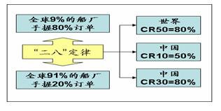 整個(gè)造船市場(chǎng)某種程度上遵循“二八定律”,換句話說,少數(shù)幾家造船廠(集團(tuán))控制整個(gè)新造船市場(chǎng)。