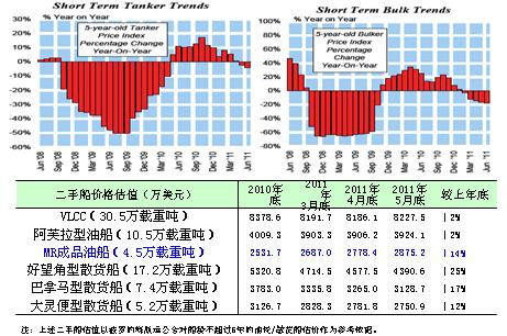 注:上述二手船估值以波羅的海航運(yùn)公會(huì)對(duì)船齡不超過5年的油輪/散貨船估價(jià)作為參考依據(jù)。