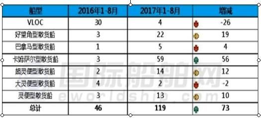 表:2016年和2017年散貨船新簽訂單船型對(duì)比