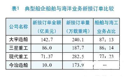 與涉足海洋工程裝備領(lǐng)域不多的其他船企相比,結(jié)果更為震驚。如三星重工新船訂單僅比日本今治造船多出15萬載重噸,但船舶與海洋事業(yè)接單金額卻超出75億美元??梢姡嬲膹娬?,在不同市場下都能活得更好。