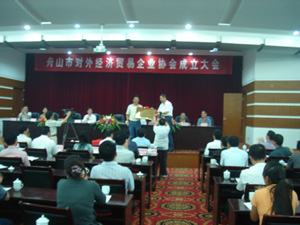 舟山市對外經(jīng)濟(jì)貿(mào)易企業(yè)協(xié)會在市外經(jīng)貿(mào)局和協(xié)會籌建工作小組的共同努力下,在市外經(jīng)貿(mào)企業(yè)的積極支持參與下,今天在這里召開成立大會。首先,我代表市政府向大會表示熱烈地祝賀!并衷心感謝籌建工作小組的積極工作和外經(jīng)貿(mào)企業(yè)的積極參與!